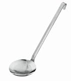 10057For skimming and straining pasta or noodles and lifting out deep-fried items. Liquid drains quickly away through the large area of fine perforations. Small pieces of food can be completely lifted out from the liquid. Features: -Rounded hook for easy access and storage -Sturdy handle with slightly curved, rounded edges that is set at an ergonomic angle for comfortable handling -Perforated -Highly polished -Manufactured in one piece for increased stability and easy cleaning -Available in two different sizes Specifications: -Length: 13.8'' -Material: Stainless steel